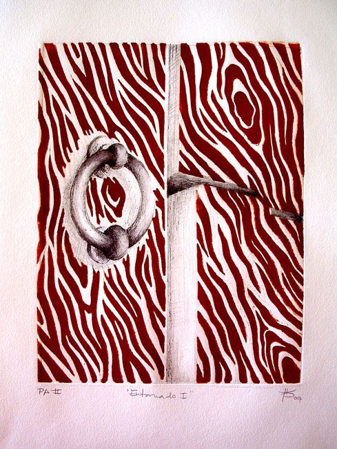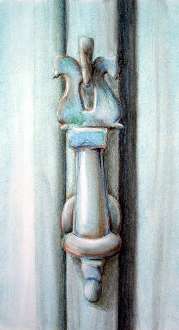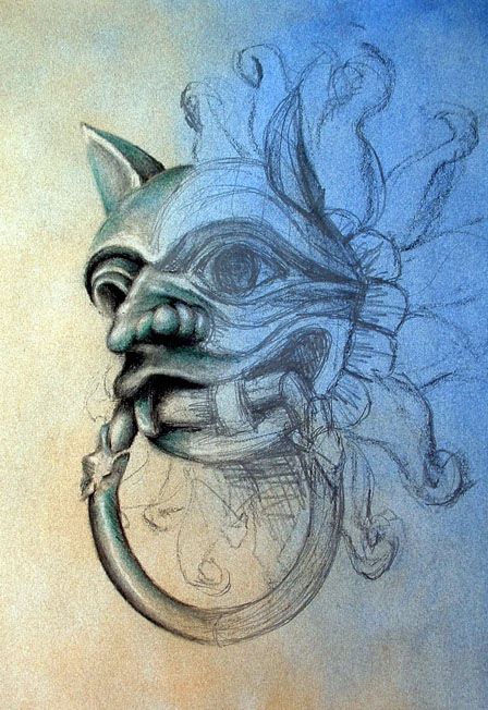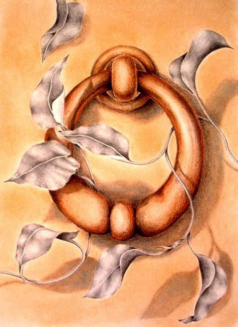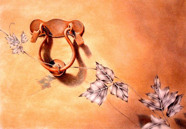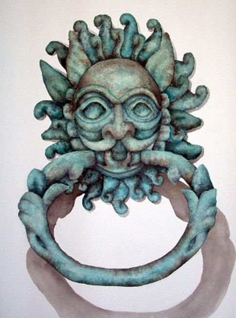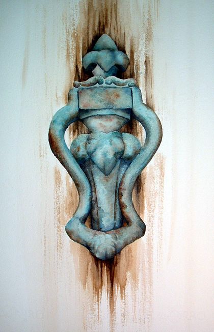 Serie: Aldabas. Acuarelas y dibujos sobre papel teñido a mano (pulse sobre las imágenes, para ampliarlas).